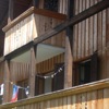 Nahaufnahme einer Holzmaserung Bild von einem Holzzaun mit dicken Balken Bildausschnitt einer Werkzeugkiste mit Werkzeug zur Holzbearbeitung Bild eines Hackebeils vor einem Haufen mit Holzstümpfen